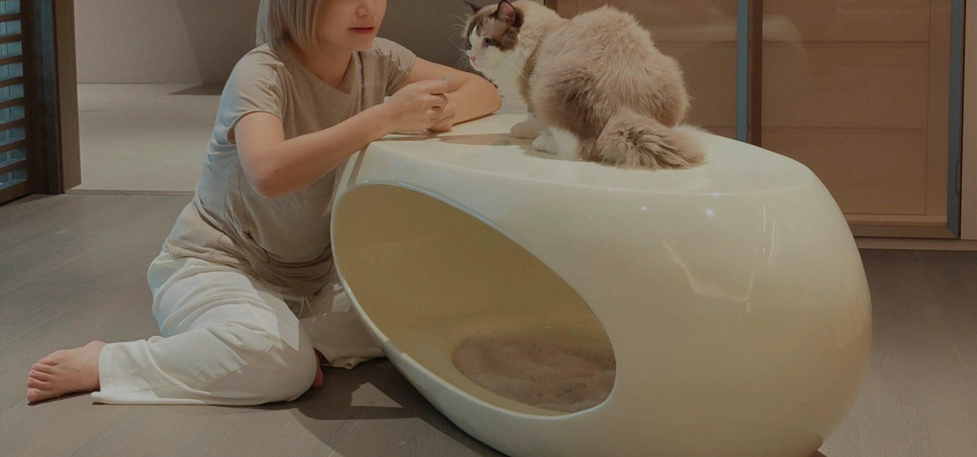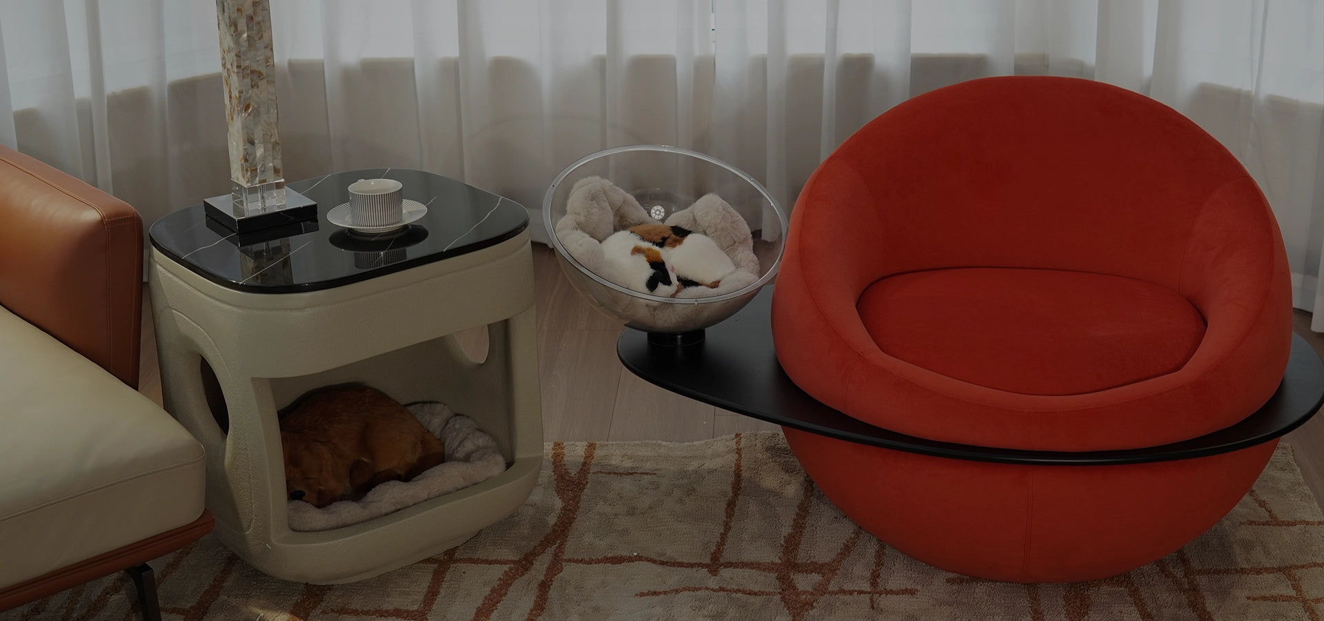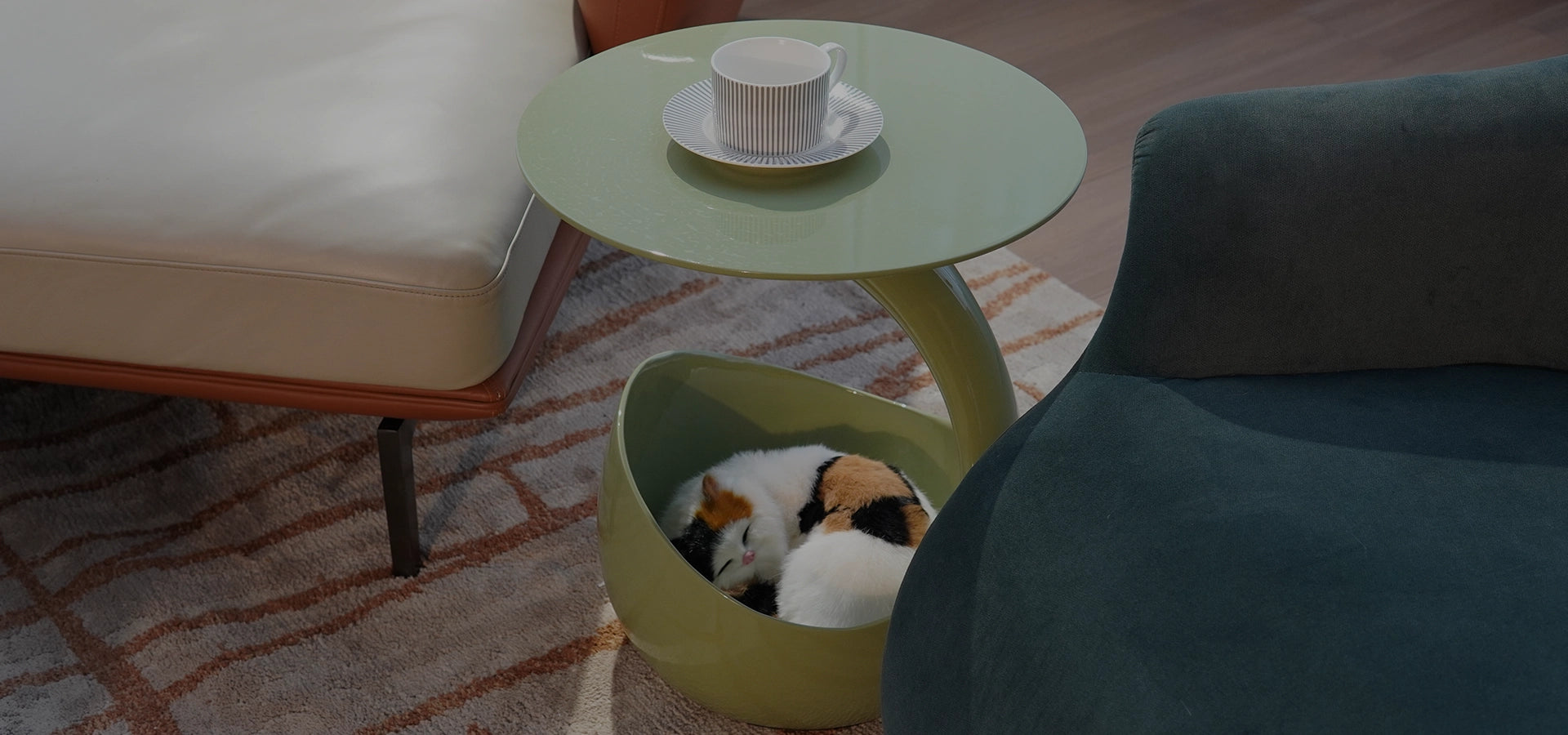 Cozy Pet Pod Side Table — A side table and cozy retreat for your pet.