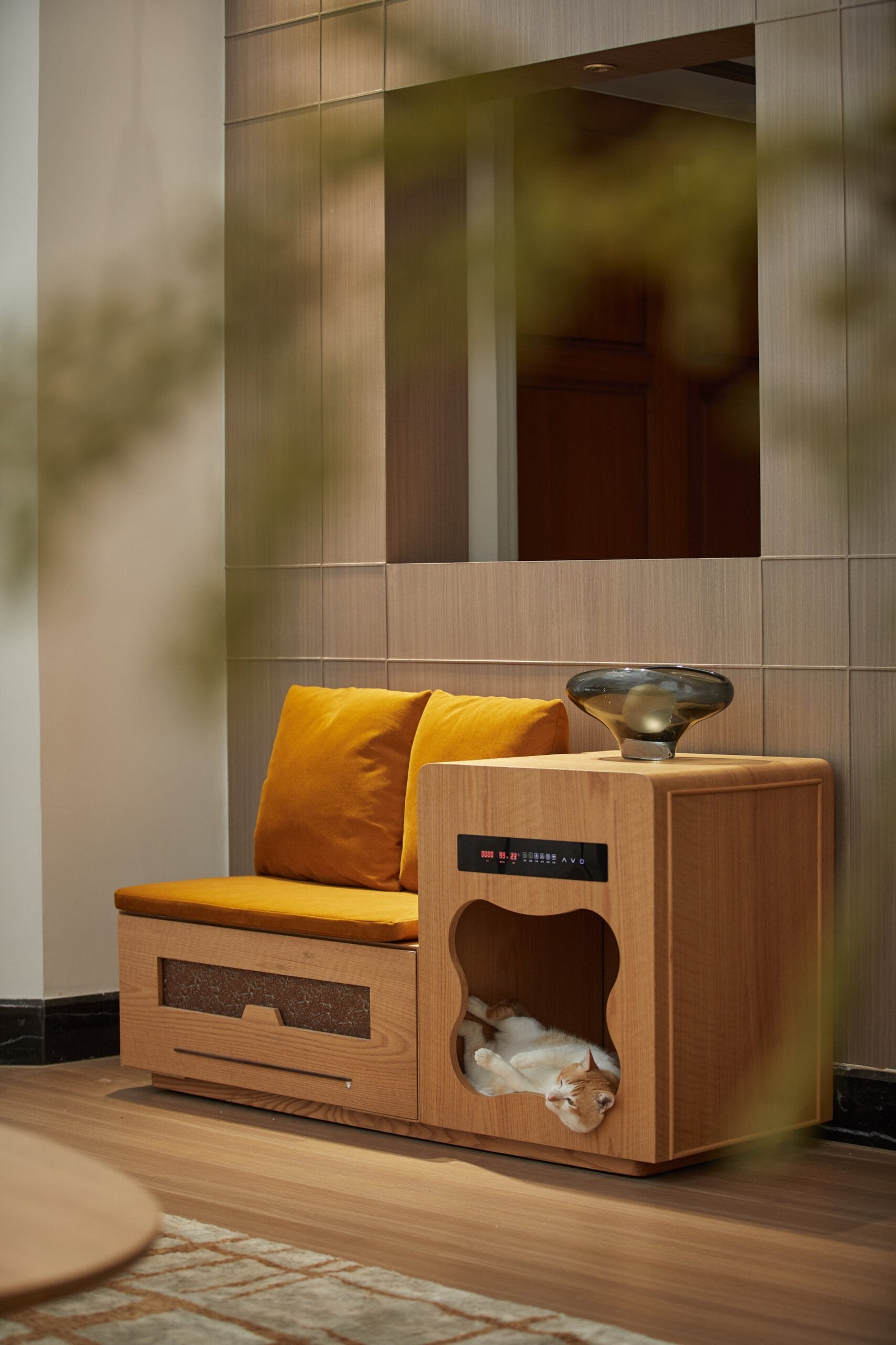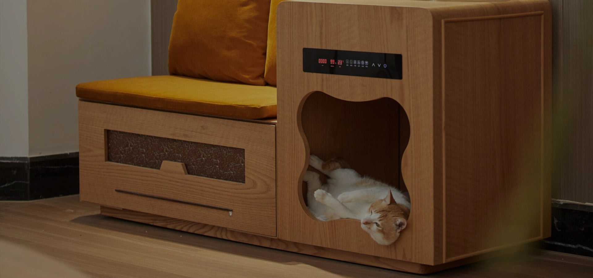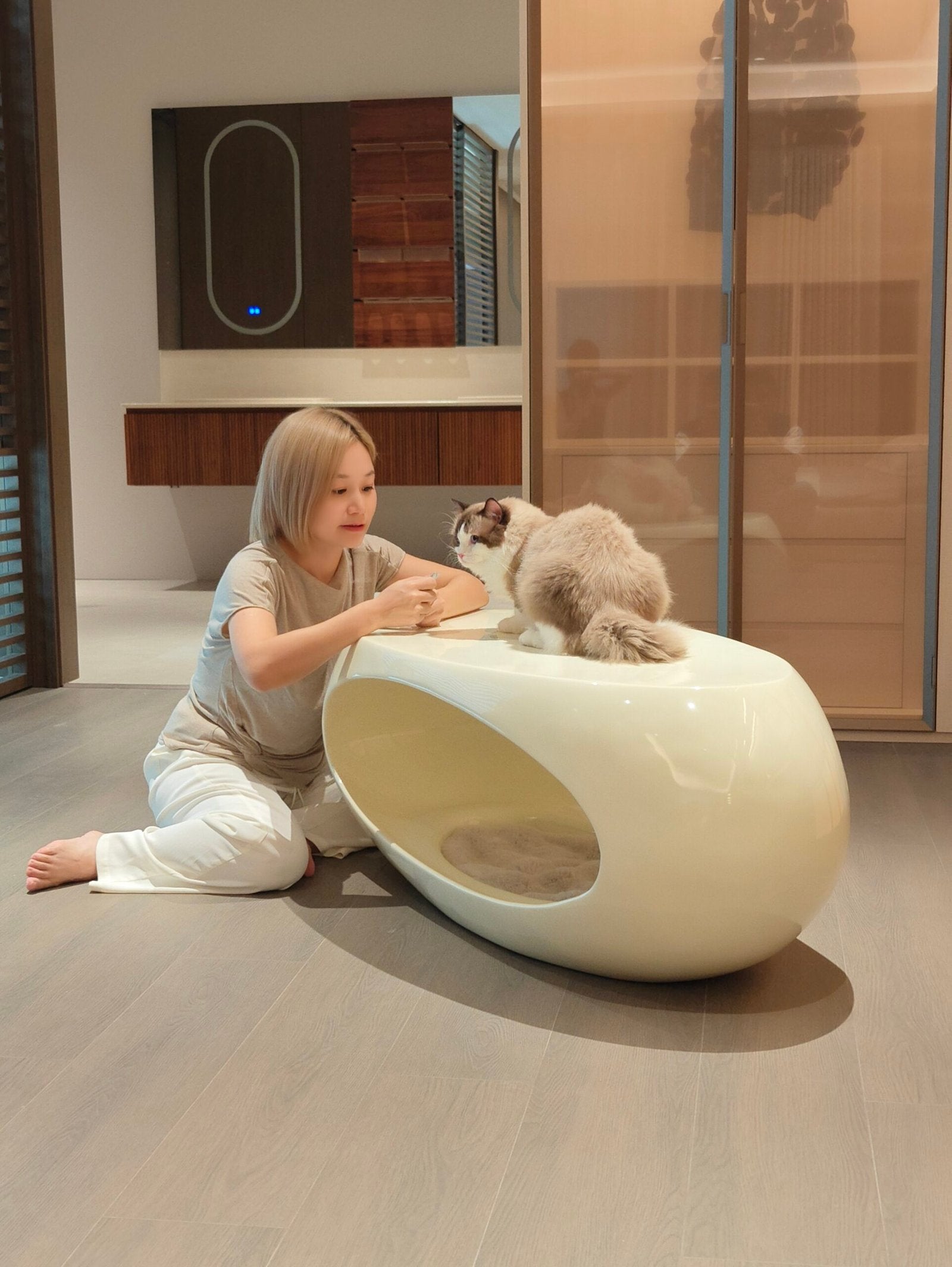 Cozy Pet Pod Side Table — A side table and cozy retreat for your pet.